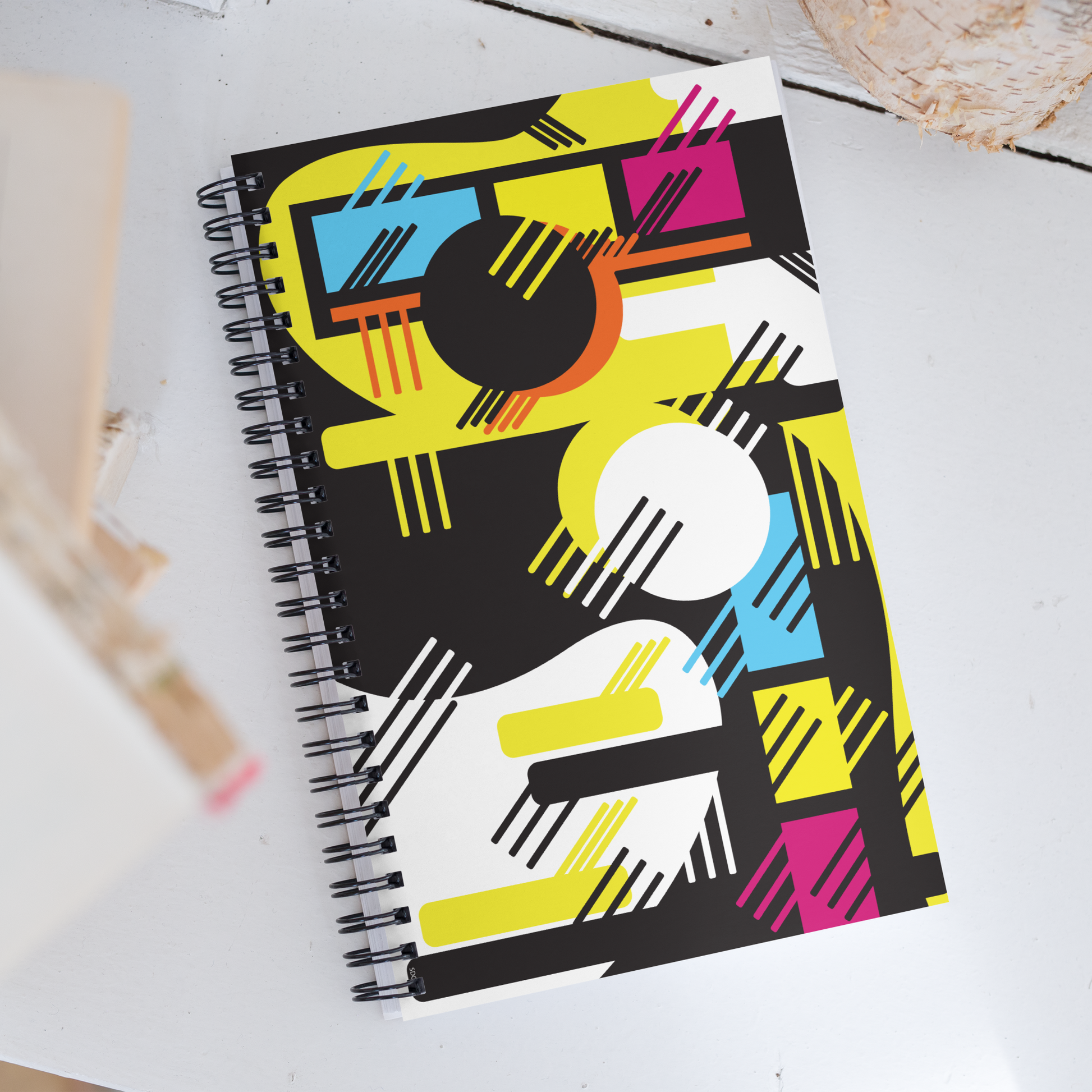 Retro 1980s Geometric Abstract Design Spiral Notebook