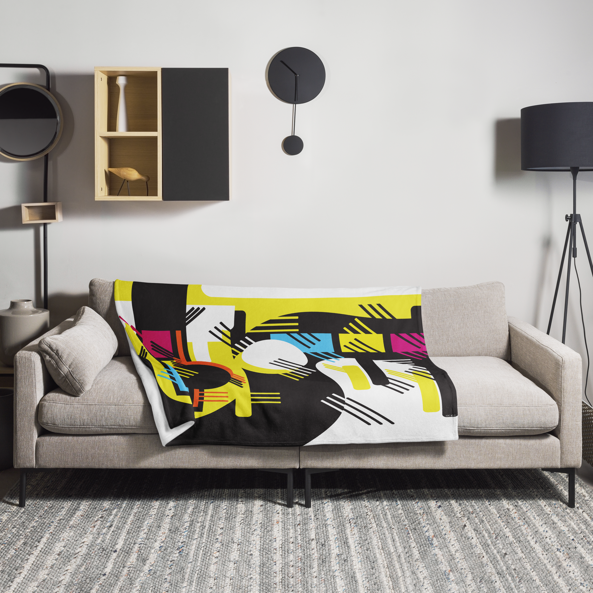 Retro 1980s Geometric Abstract Design Throw Blanket