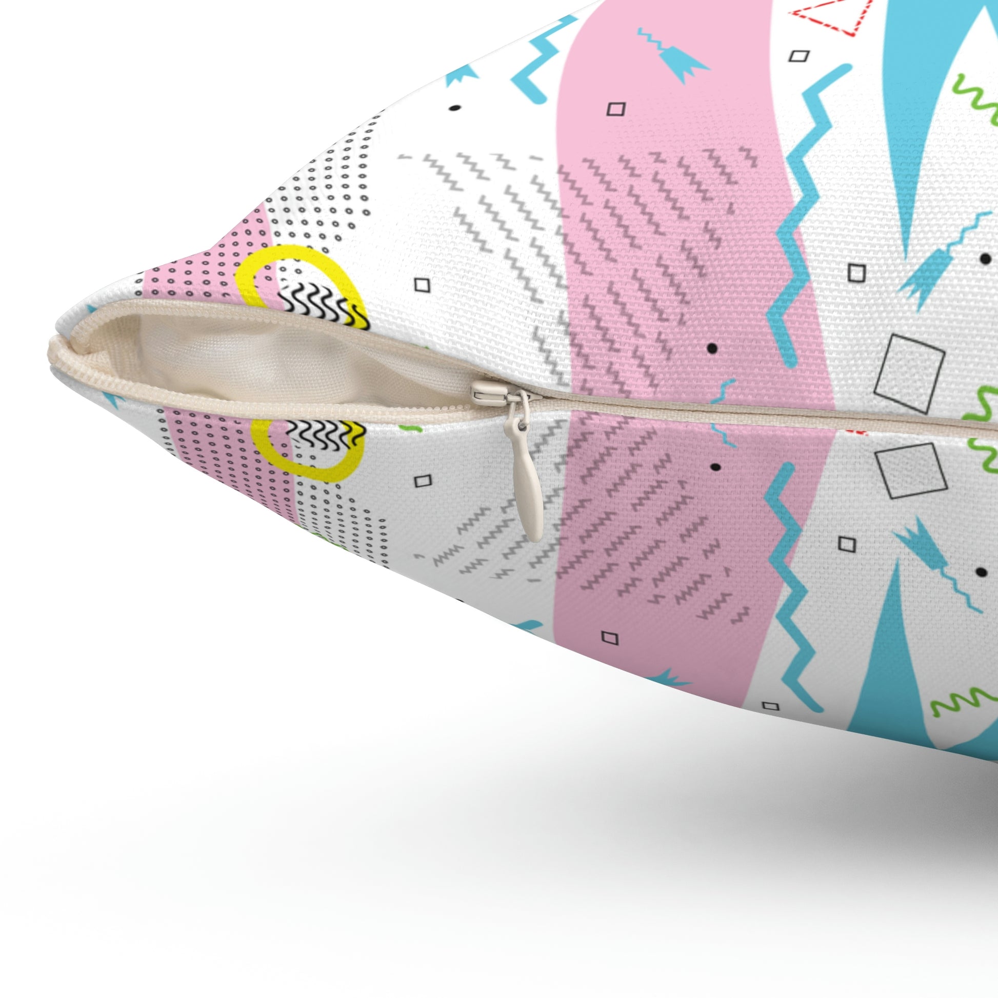 Pink Blue 1980s Retro Style Gridded Pattern Spun Polyester Square Pillow