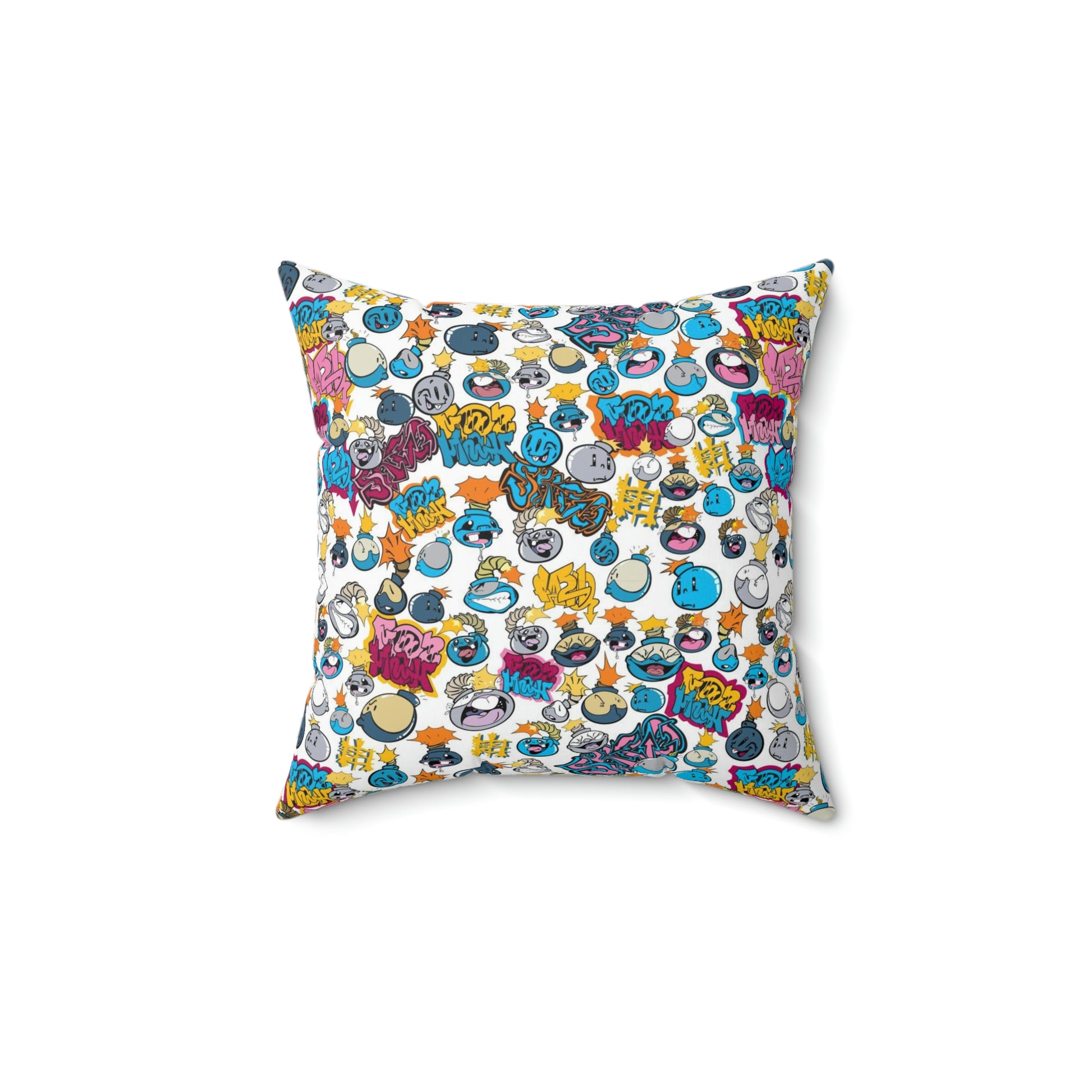 Spun Polyester Square Pillow - Graffiti Cartoon Characters Design